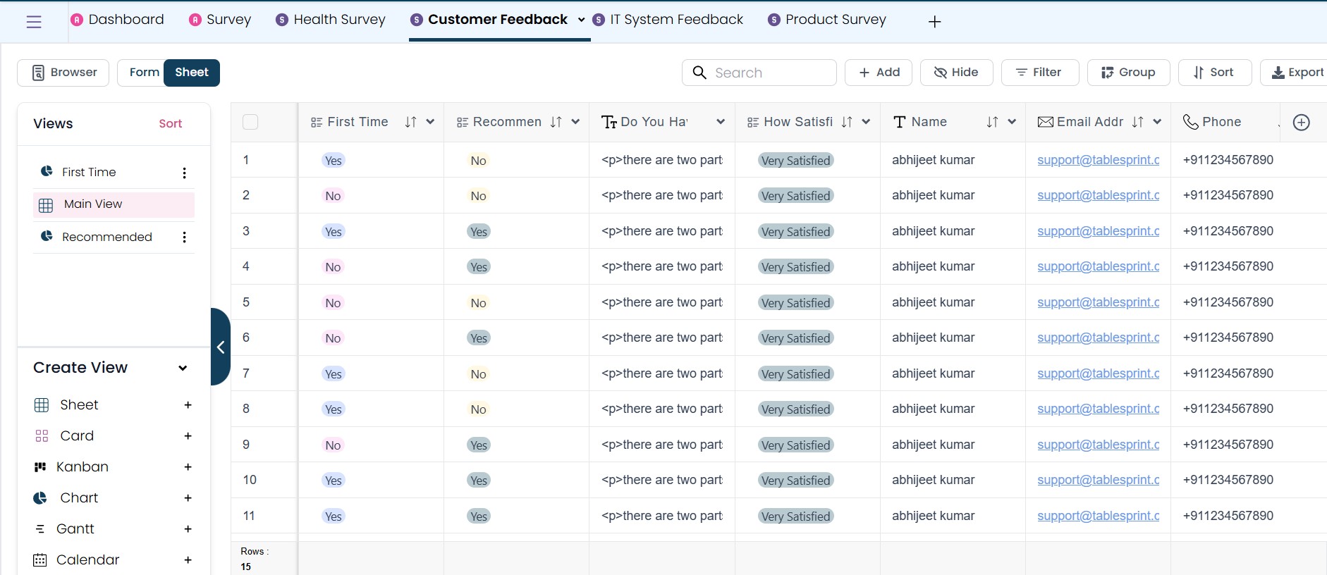 Simplify your surveys and feedback collection process with TableSprint, and stay organized always!